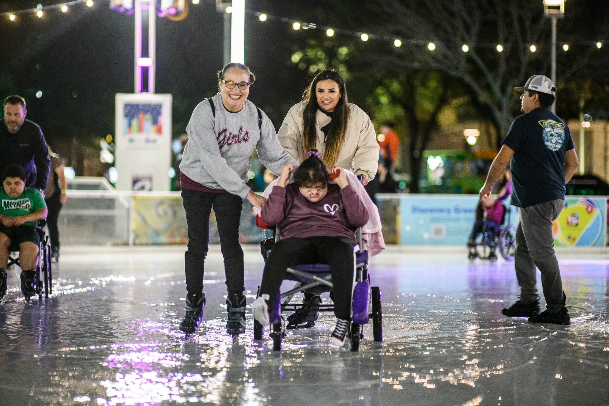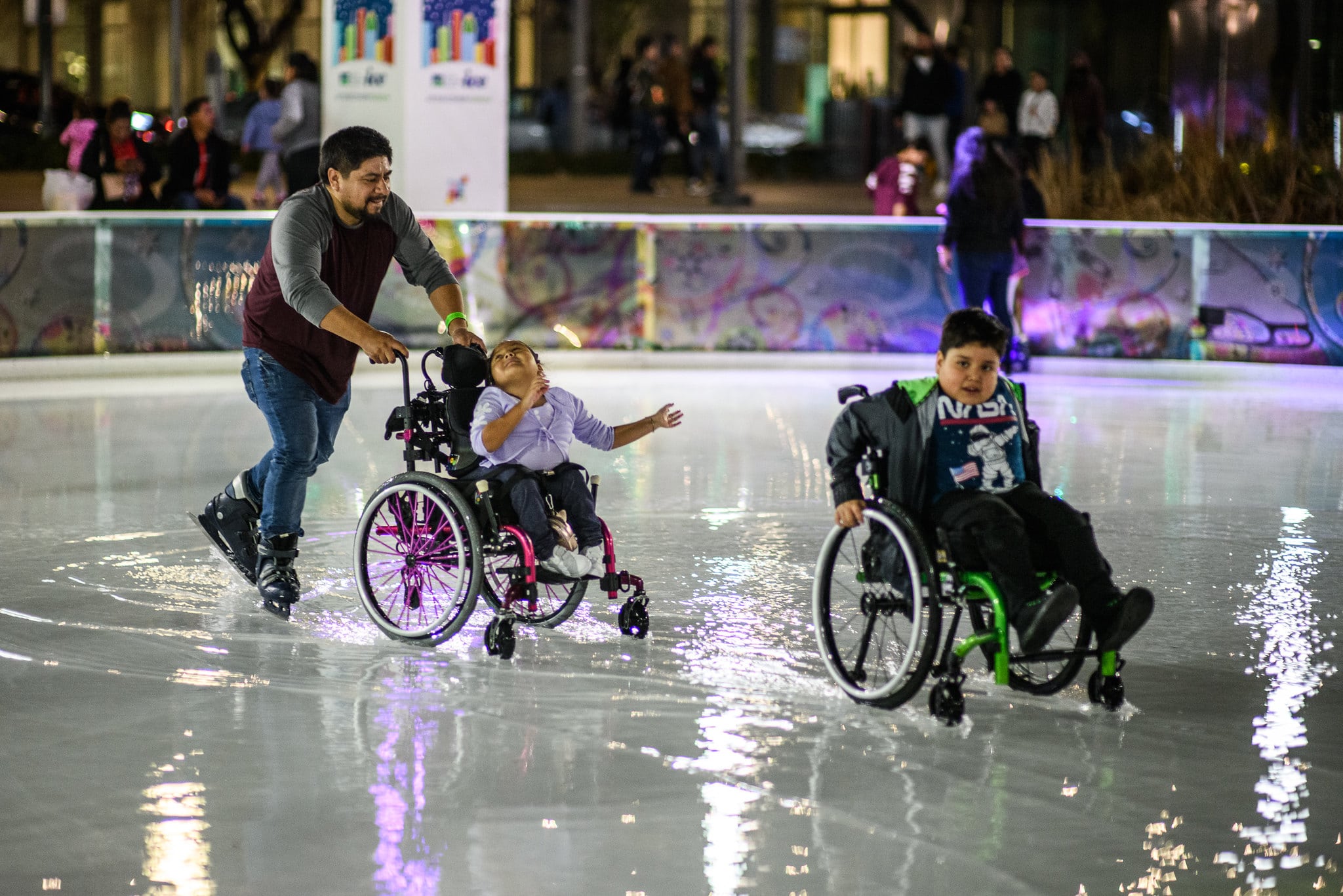 Non-motorized wheelchairs are always allowed on the rink, but Inclusive Skaters Night gives those with disabilities the opportunity to enjoy Green Mountain Energy Ice with a smaller crowd and their families right by their side. Best of all – special skaters skate for free!
