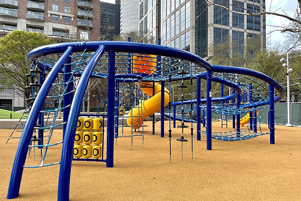 The newly designed playground and other master plan improvements—including expanded restrooms that rolled out in May 2018 and the Green Mountain Energy Sun Club Allée that opened in August 2020—address the needs of the growing population of people who live, work and play downtown while positioning the park to meet the demands of the future.