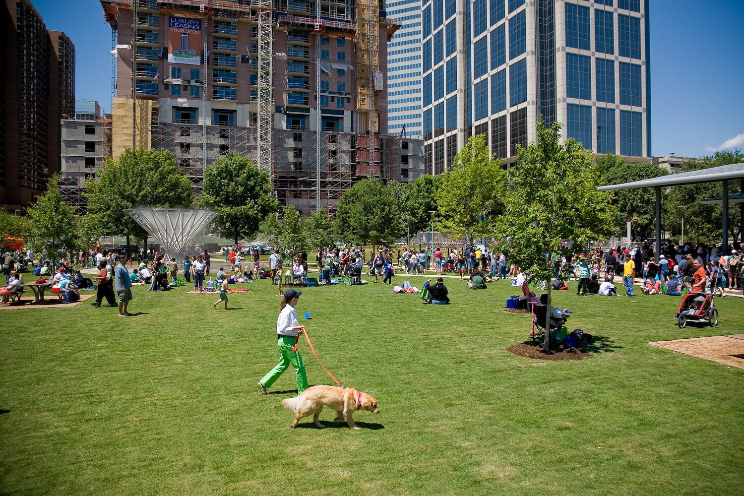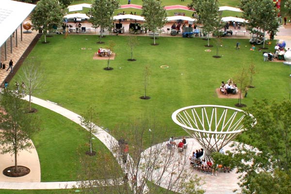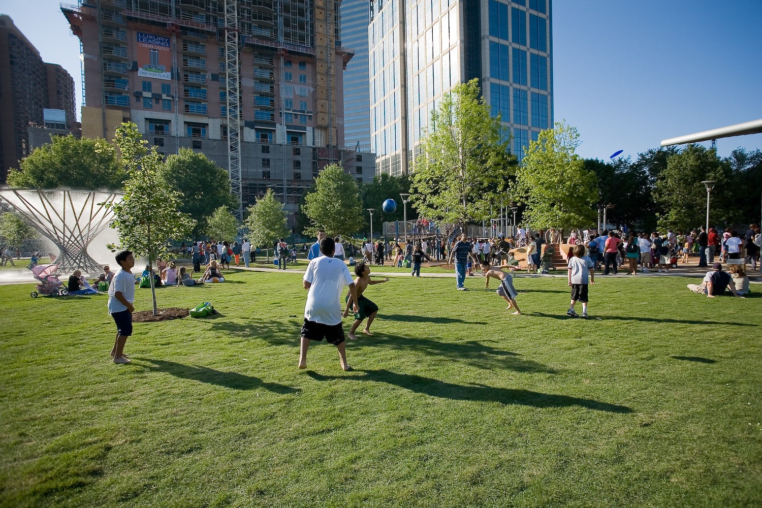 The Sarofim Picnic Lawn is a wide-open lawn space that is perfect for more than just a picnic. The Lawn is near the John P. McGovern Playground, the Mist Tree, and the Kinder Large Dog and the Harriet and Joe Foster Dog Runs, making it a perfect place for family get-togethers, such as reunions or birthday parties. The Lawn can also accommodate small private corporate events or client receptions. The Lawn has two permanent picnic tables, and borders the Andrea and Bill White Promenade.
