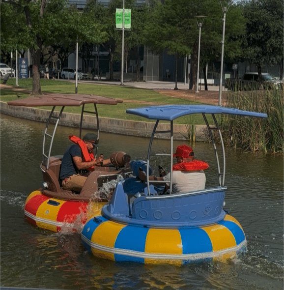 Whether you’re bumping around with friends or gliding through the water in style, it’s the ultimate way to cool off and have a blast in the heart of downtown Houston!