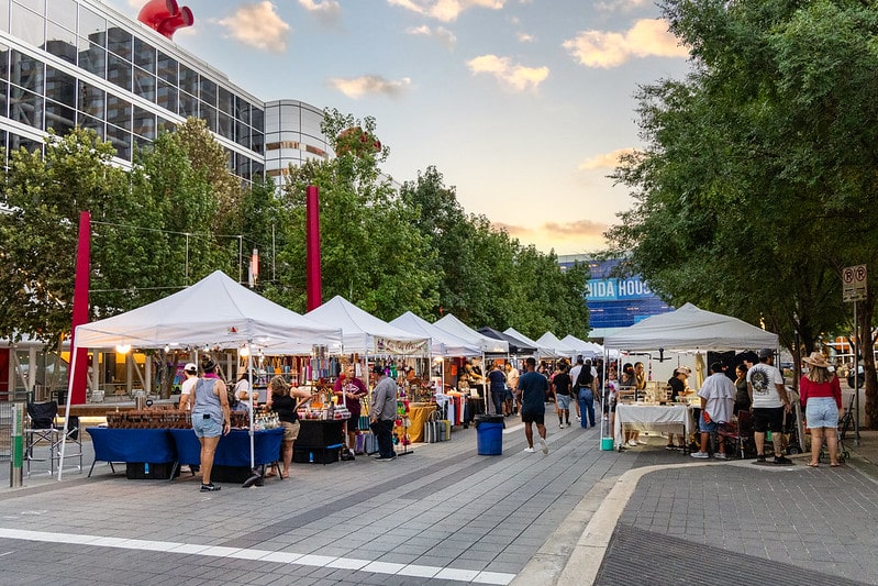 Discovery Green helps Houstonians shop local at Flea by Night supported by Green Mountain Energy. Set in the park’s vibrant green space in the heart of downtown and along Avenida de las Americas.