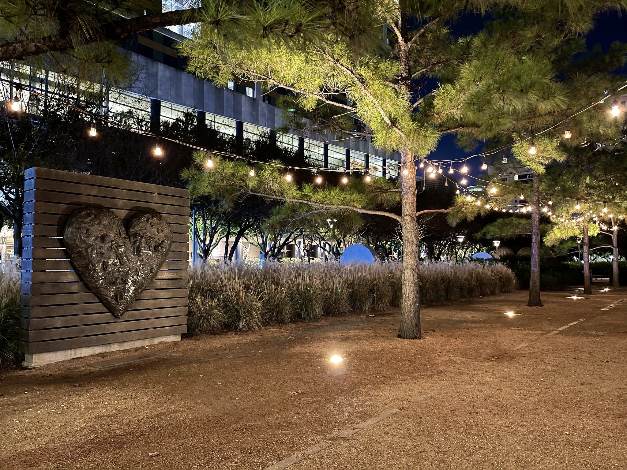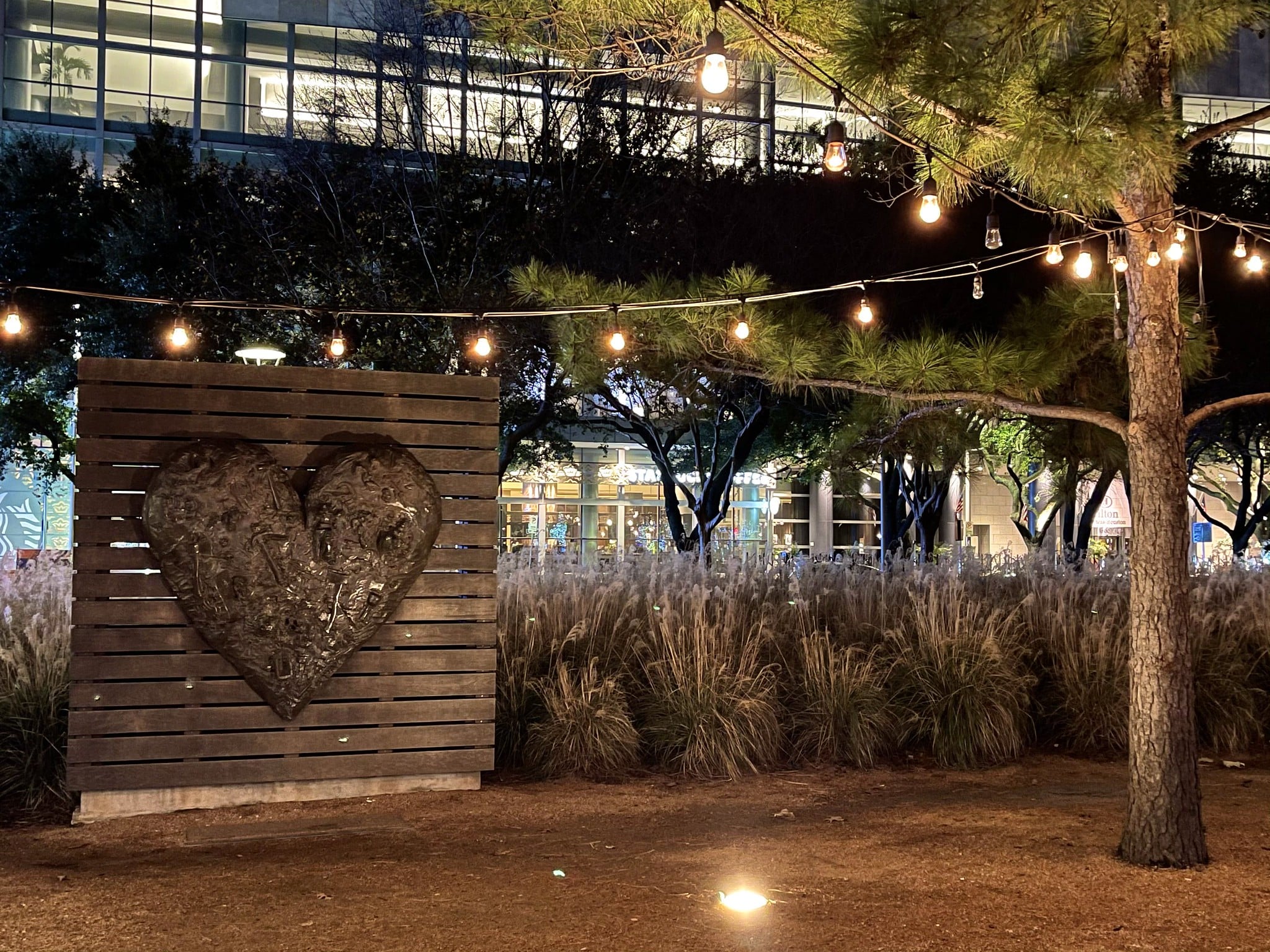 Renowned American pop artist Jim Dine’s The House (Heart), 1983 has found a new home at Discovery Green. This distinctive artwork was generously given to the park and dedicated September 25, 2013 in memory of Maconda Brown O’Connor (1930 – 2012) by her children, George, Toby and John O’Connor, and Nancy Abendshein. Maconda was instrumental in developing and implementing the vision of the park.